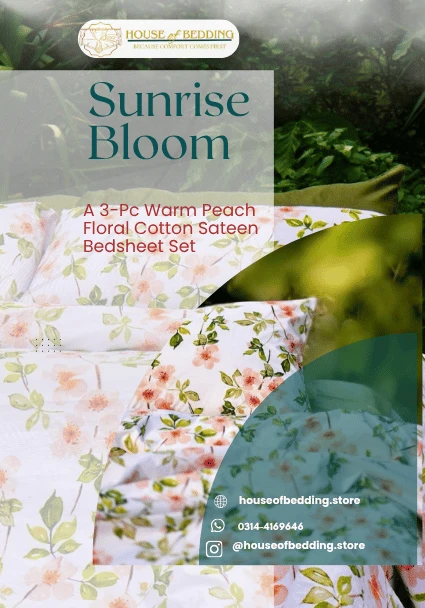 • Sunrise Bloom: A 3-Pc Warm Peach Floral Cotton Sateen Bedsheet Set Sunrise Bloom: A 3-Pc Warm Peach Floral Cotton Sateen Bedsheet Set ₨4,400.00 Original price was: ₨4,400.00.₨3,990.00Current price is: ₨3,990.00.