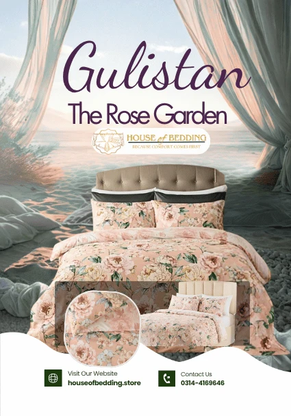 • Gulistan: The Rose Garden 3-Pc Organic Cotton Bedsheet Set Gulistan: The Rose Garden Organic Cotton Duvet Cover Ensemble ₨8,800.00 Original price was: ₨8,800.00.₨7,990.00Current price is: ₨7,990.00.