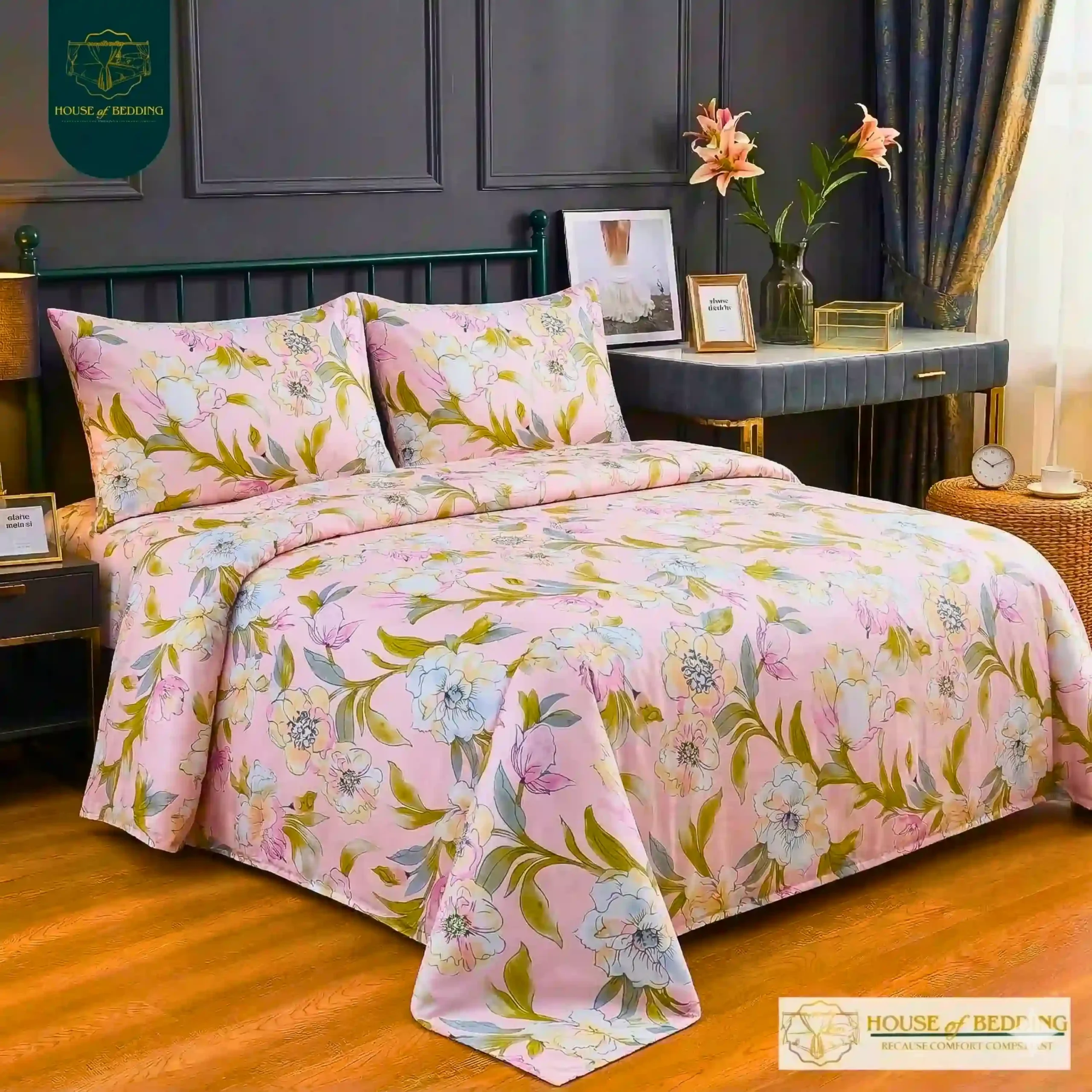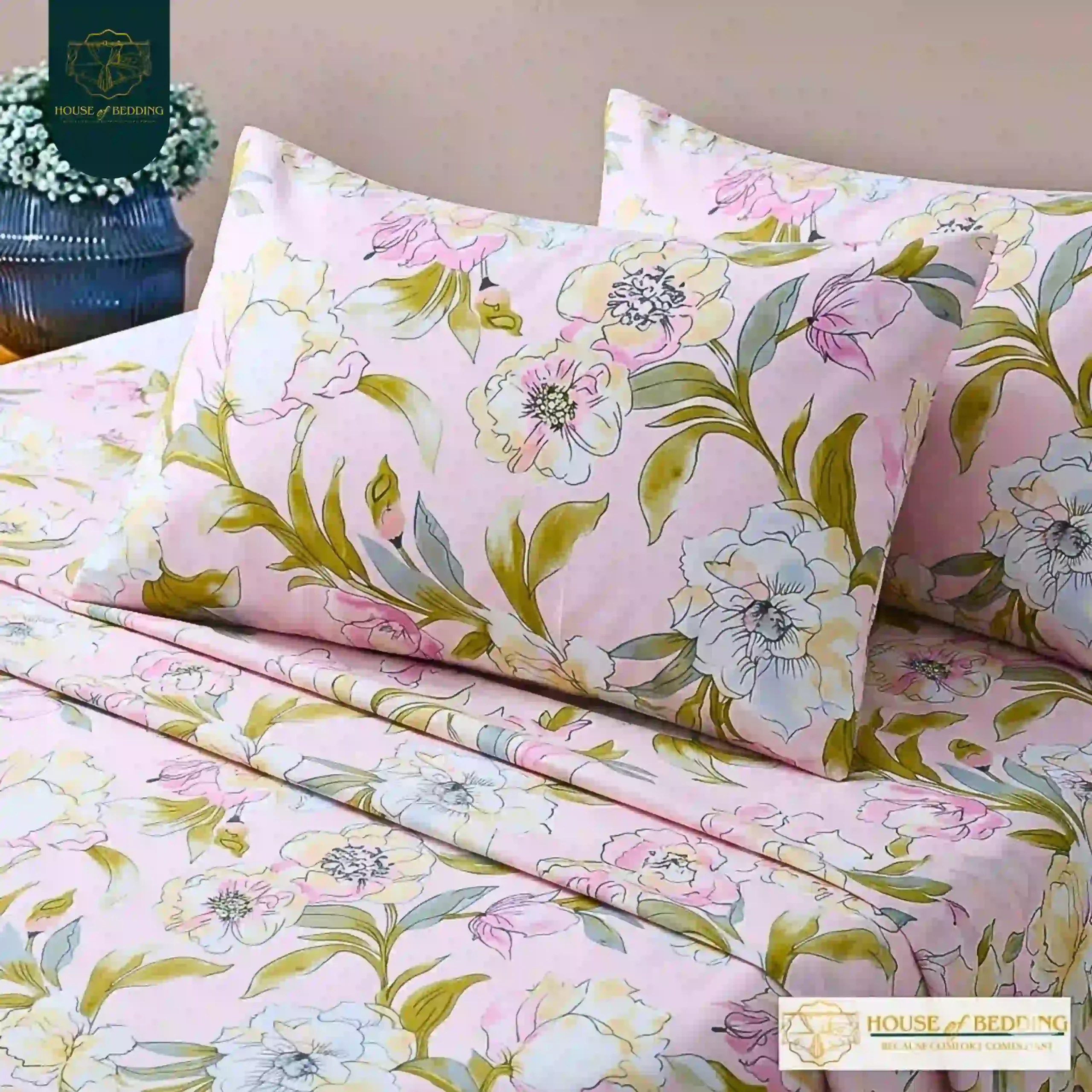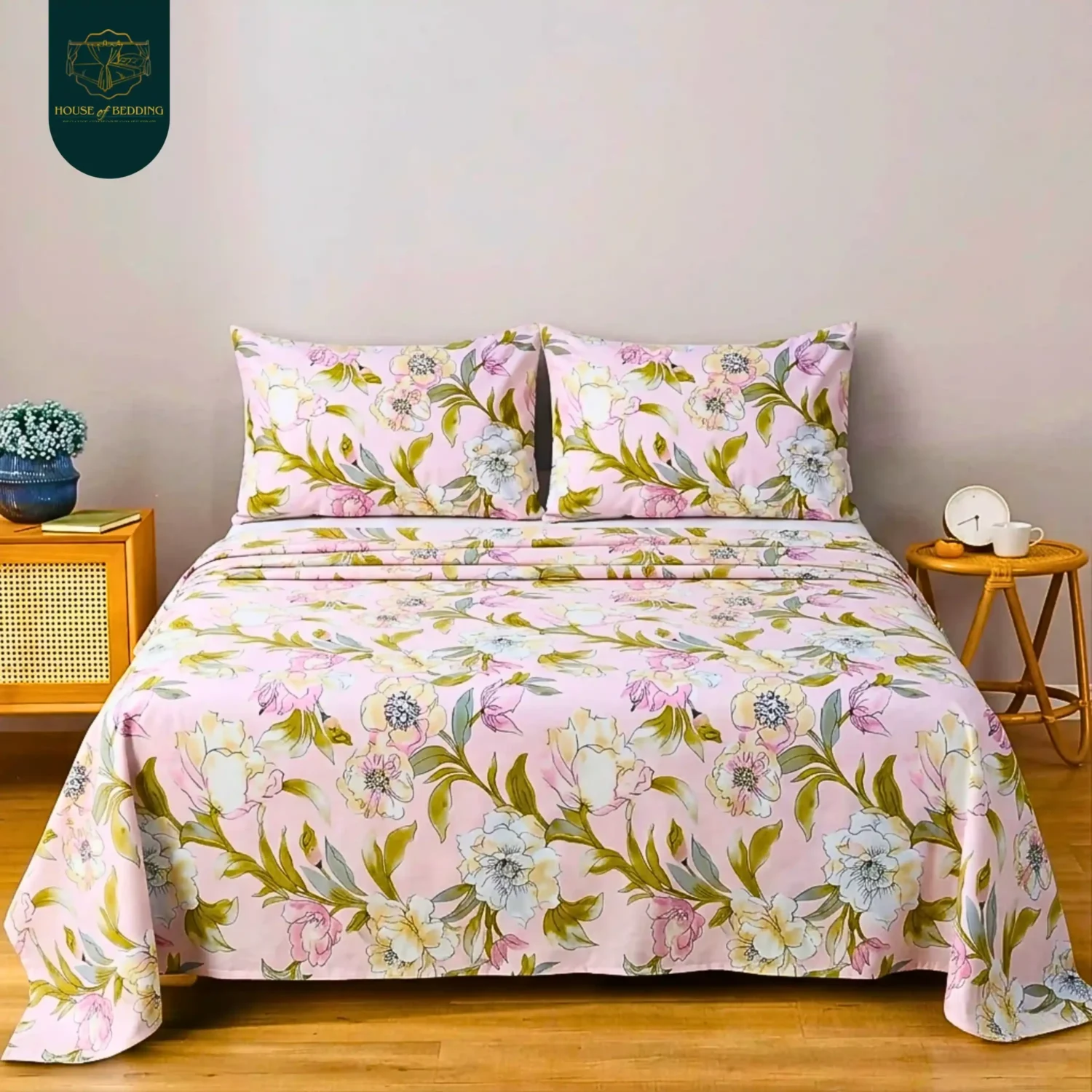 Elysian Meadow: The Softest Bloom 3-Pc Cotton Bedsheet Set