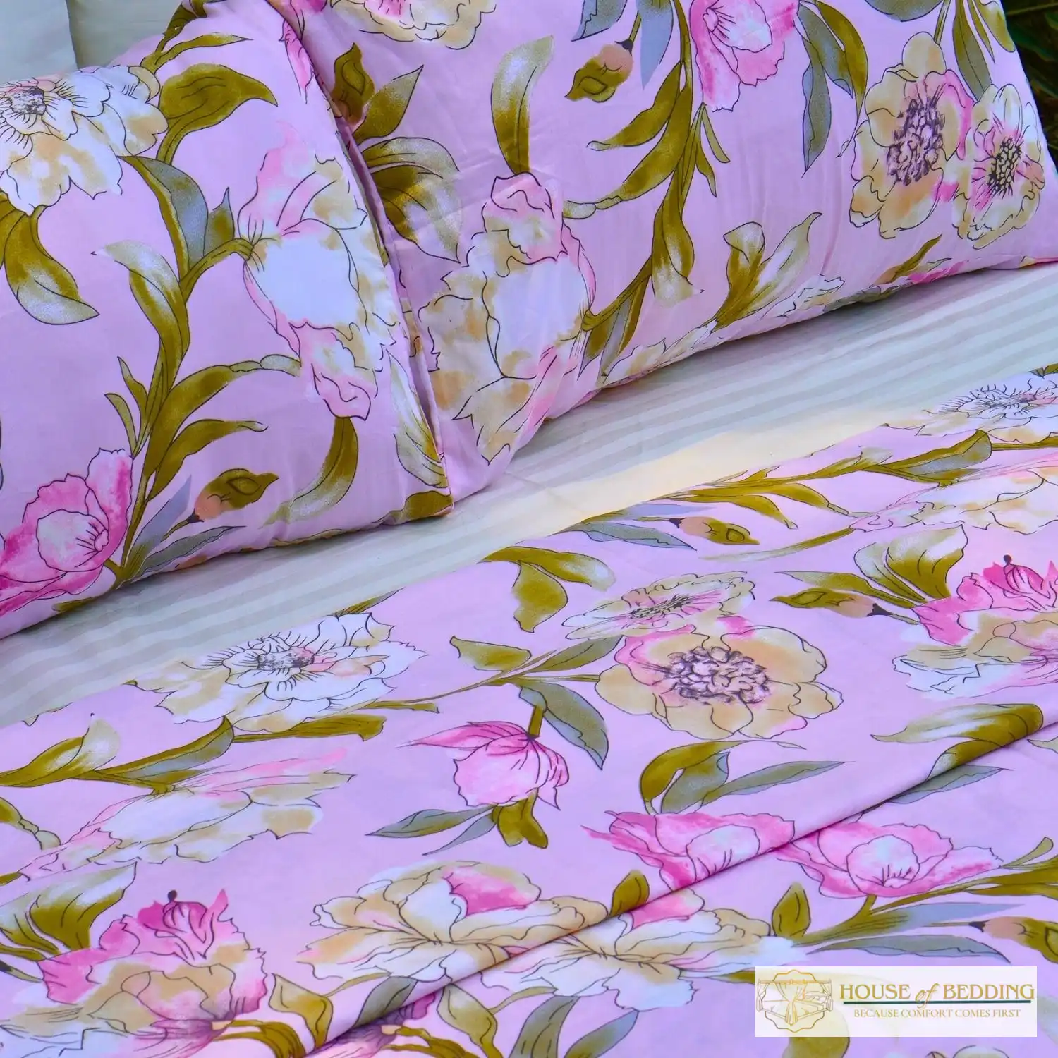 Elysian Meadow: The Softest Bloom 3-Pc Cotton Bedsheet Set