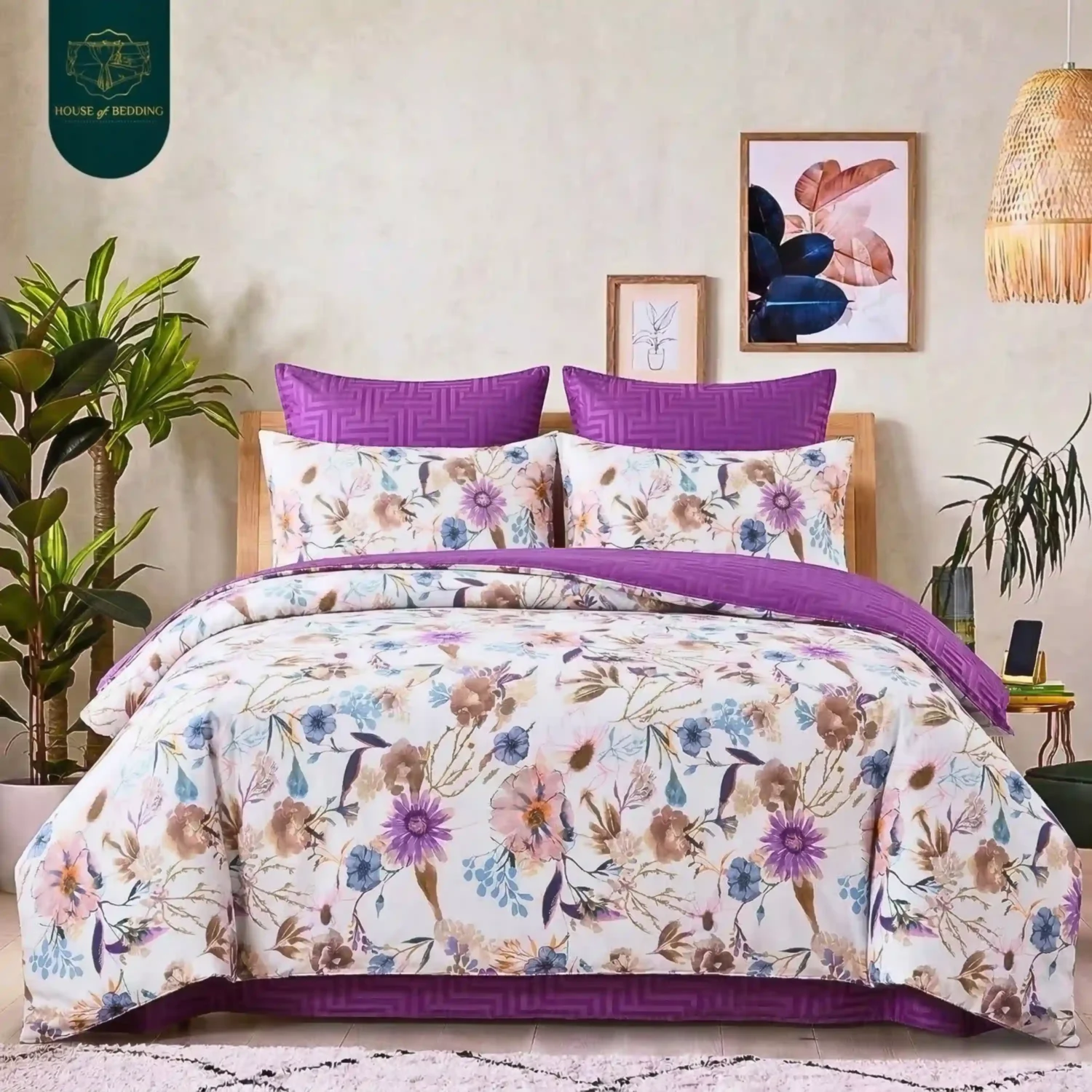 Amethyst Bloom: The 6-Pc Cotton Sateen All-Season Filled Comforter & Razai Set