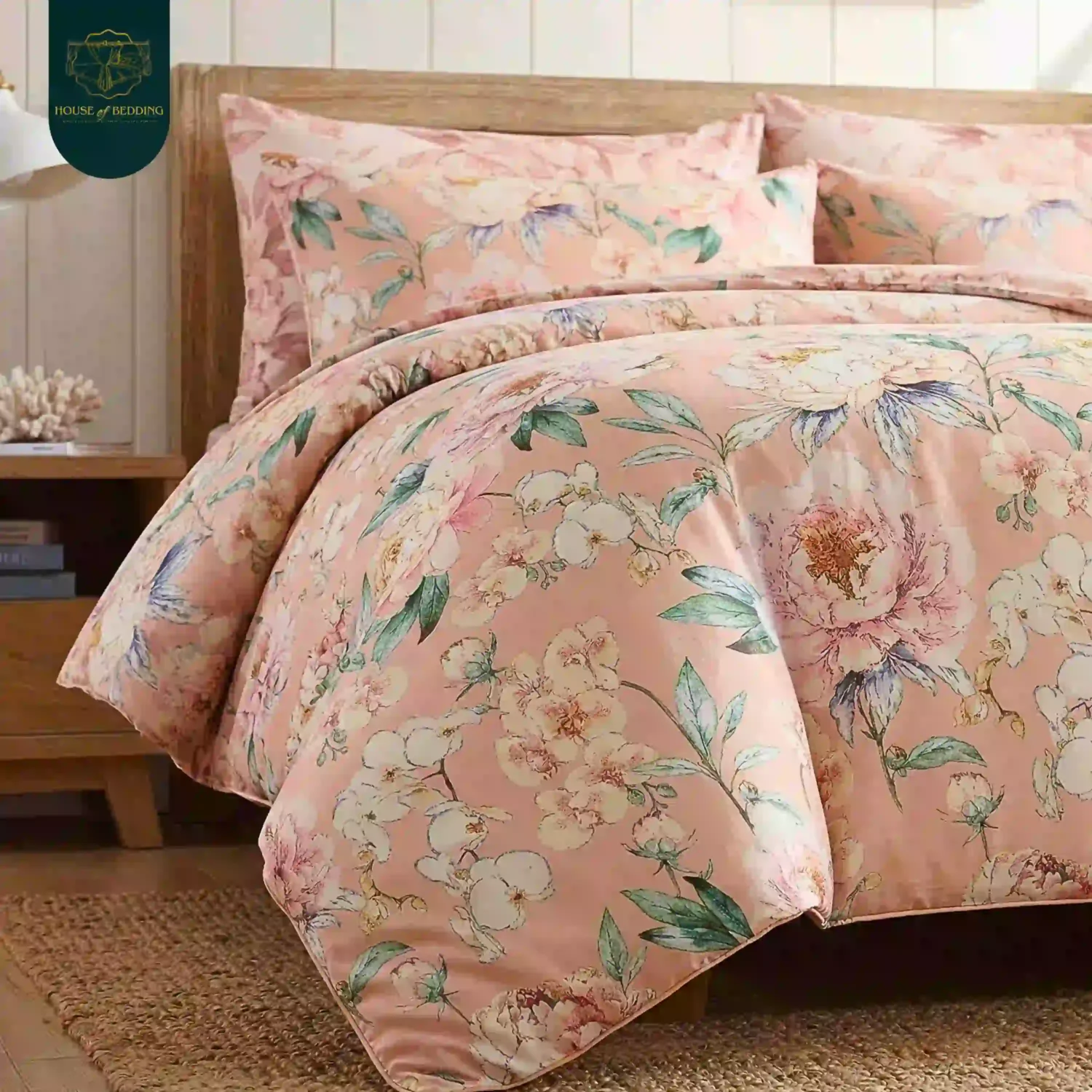 Sunrise Bloom: A Complete 6-Piece Cotton Sateen Duvet Cover Ensemble for a Fresh Look