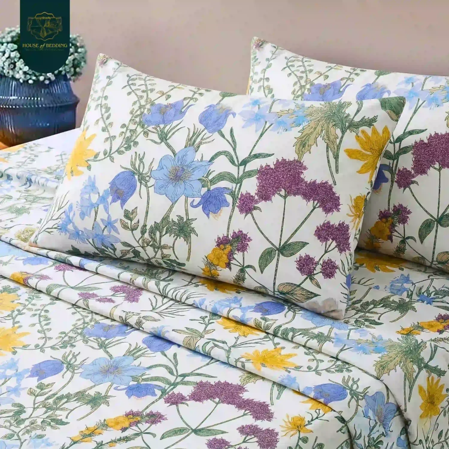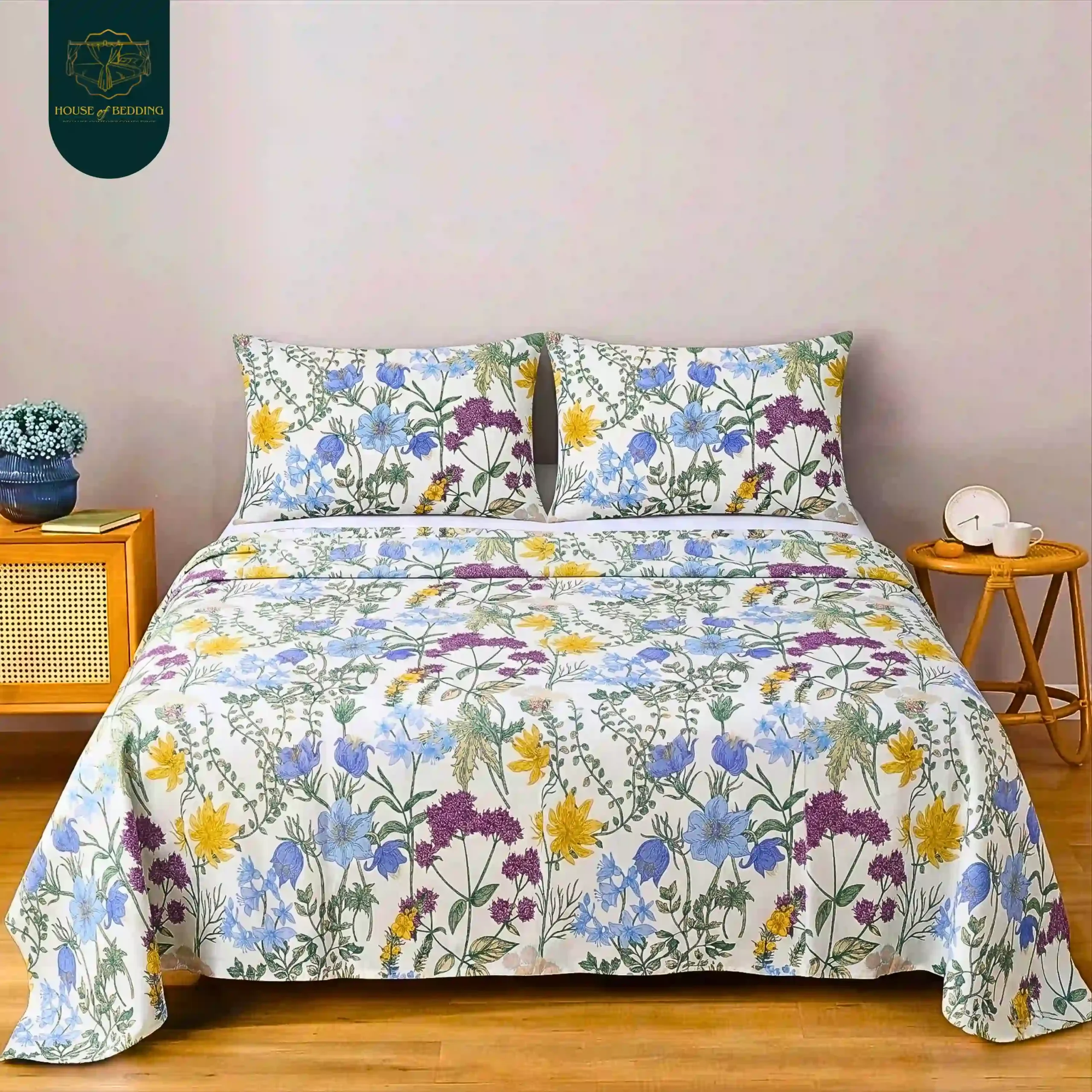 Elysian Meadow: The Softest Bloom 3-Pc Cotton Bedsheet Set