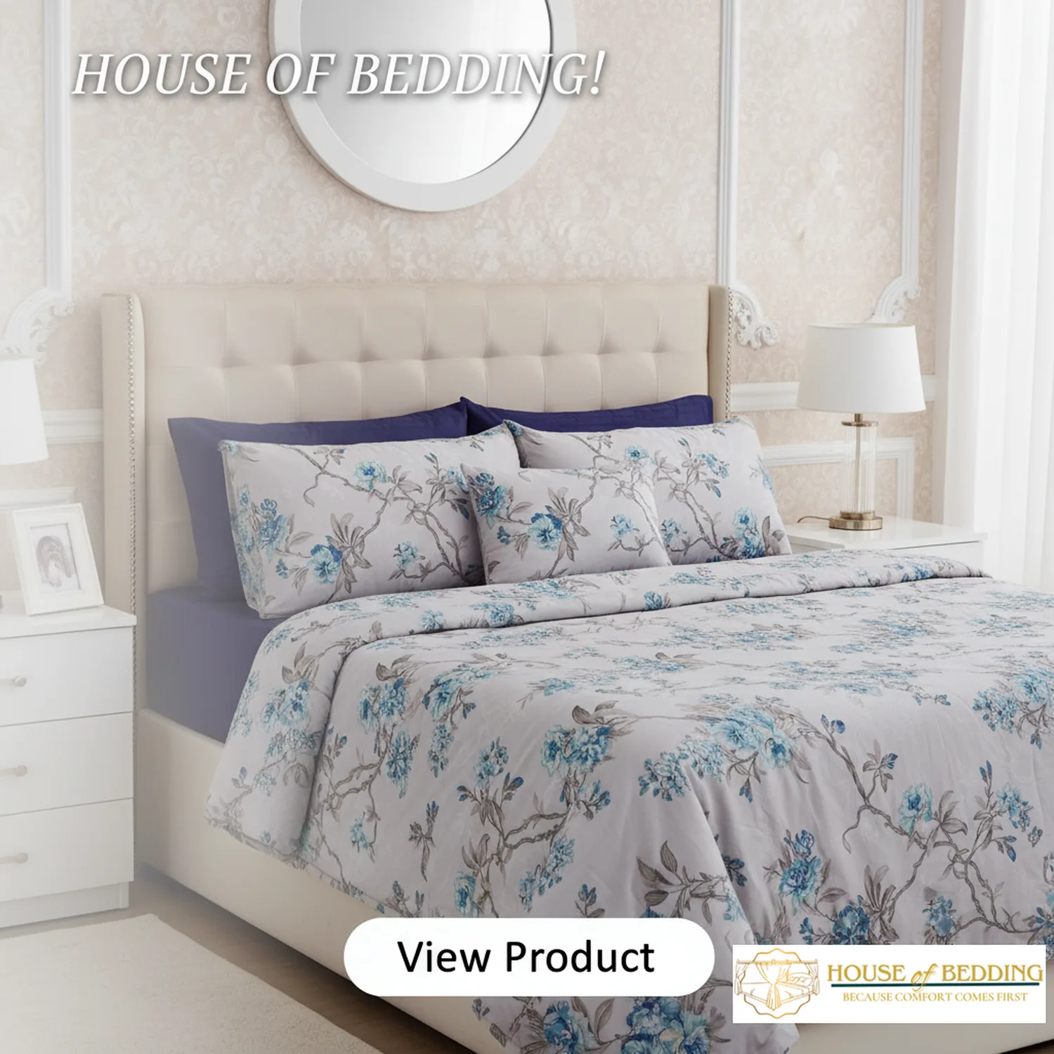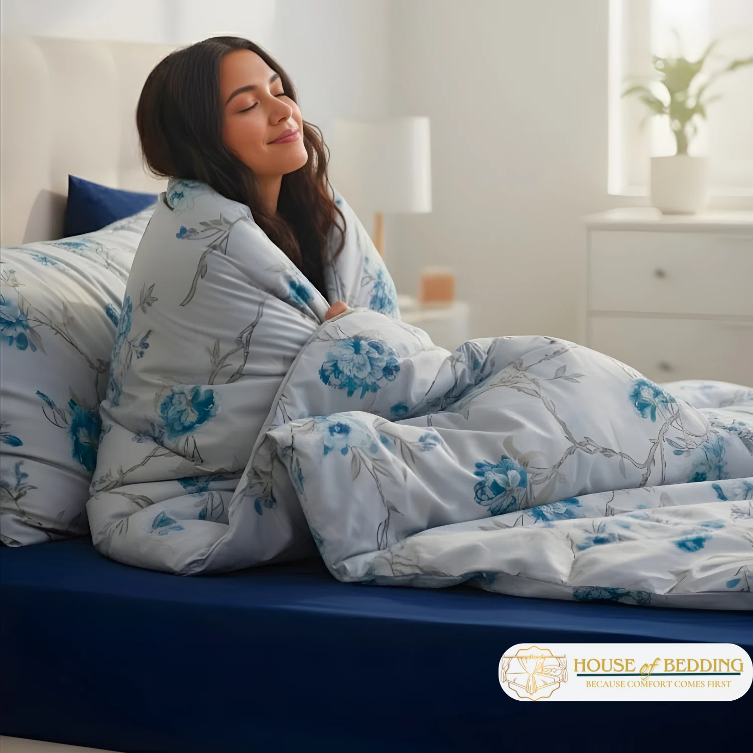 The Periwinkle Charm: 6-Piece Cotton Sateen Cozy Razai Set