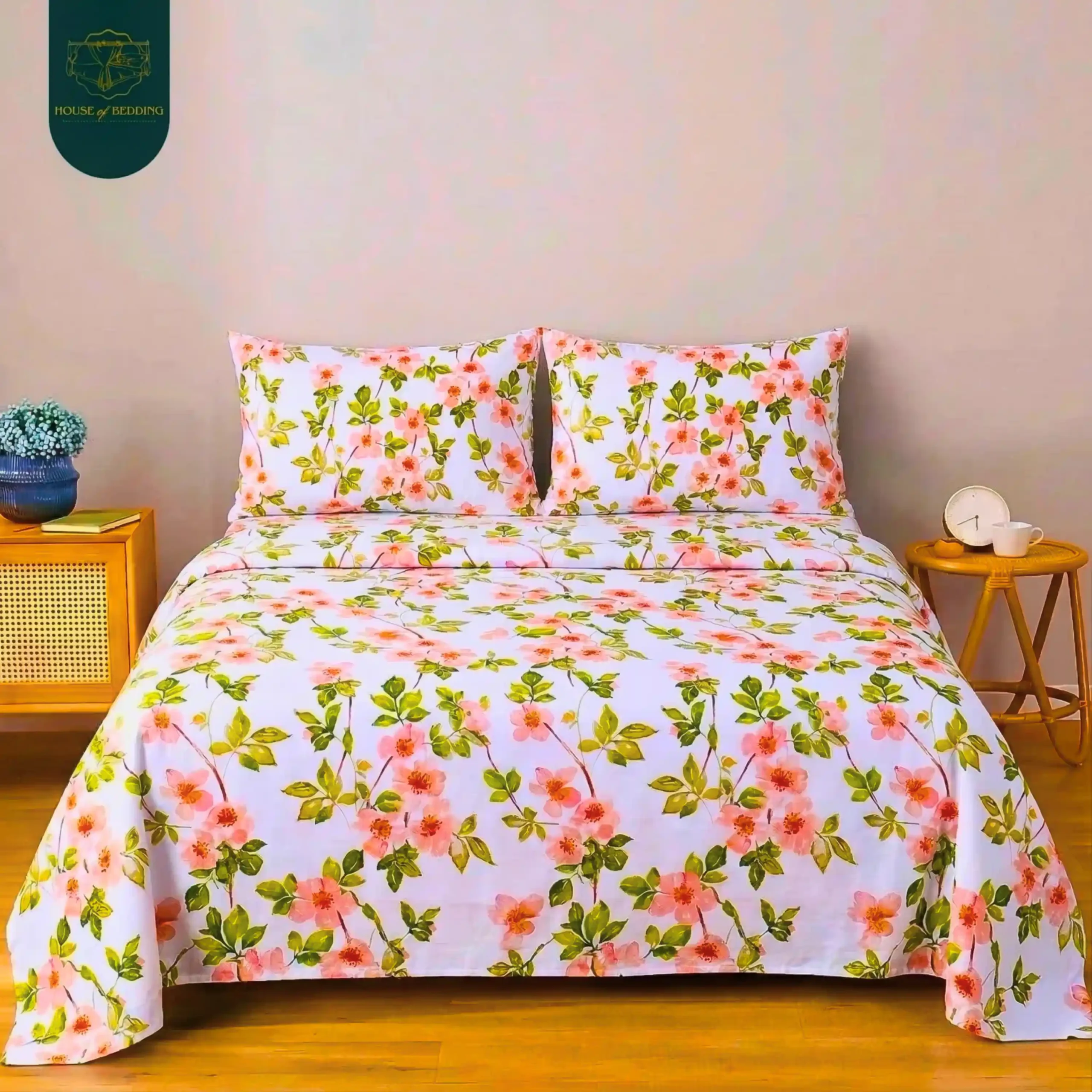 Elysian Meadow: The Softest Bloom 3-Pc Cotton Bedsheet Set
