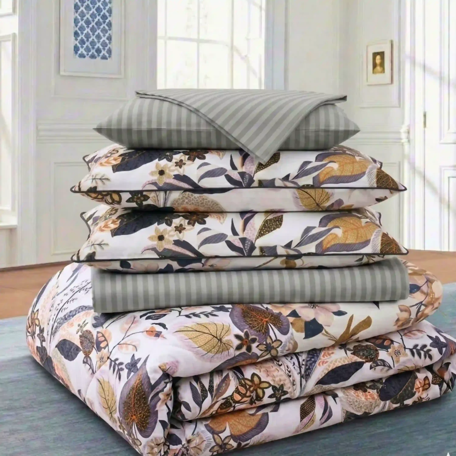 Sunrise Bloom: A Complete 6-Piece Duvet Cover Ensemble for a Fresh Look