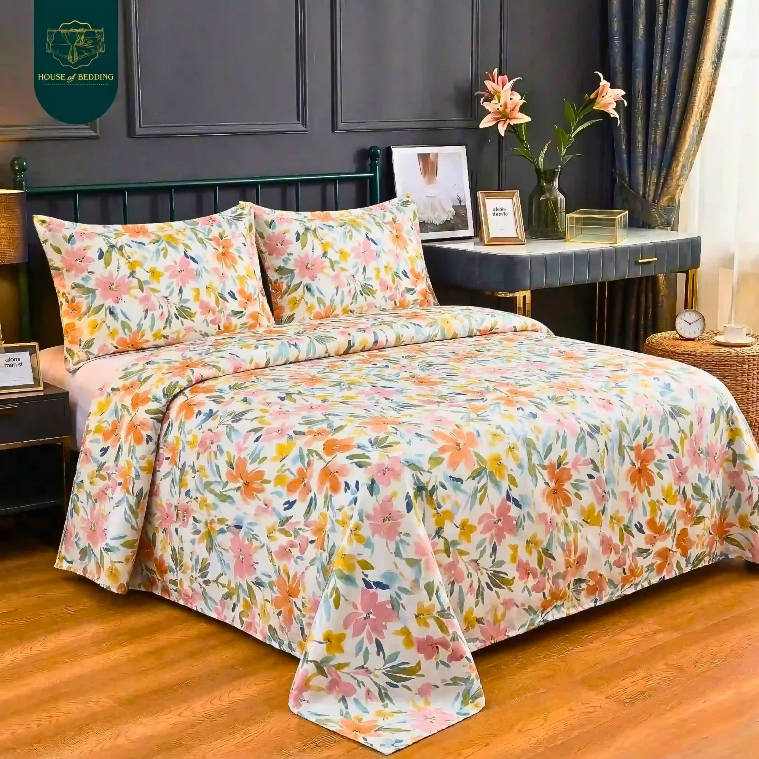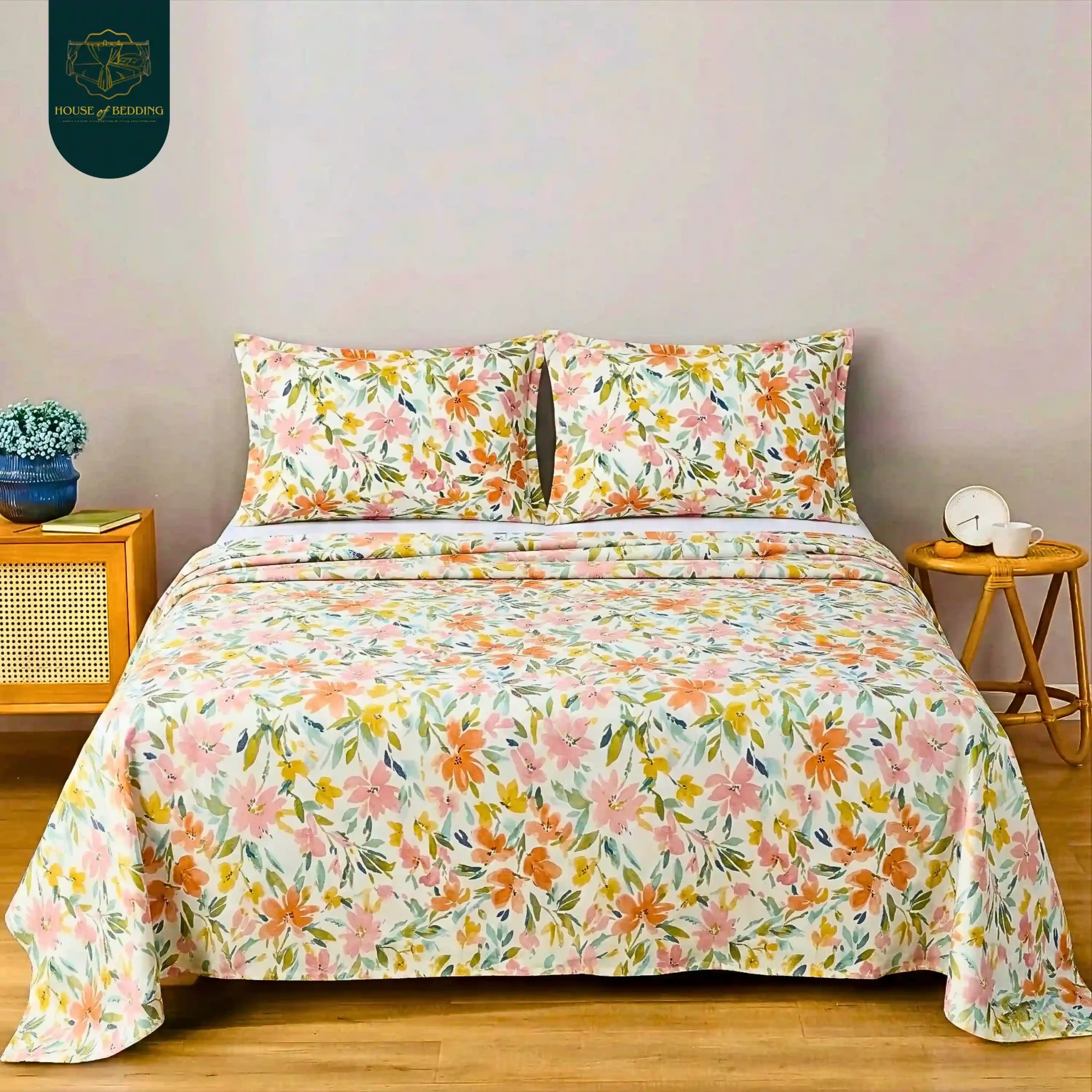 Elysian Meadow: The Softest Bloom 3-Pc Cotton Bedsheet Set